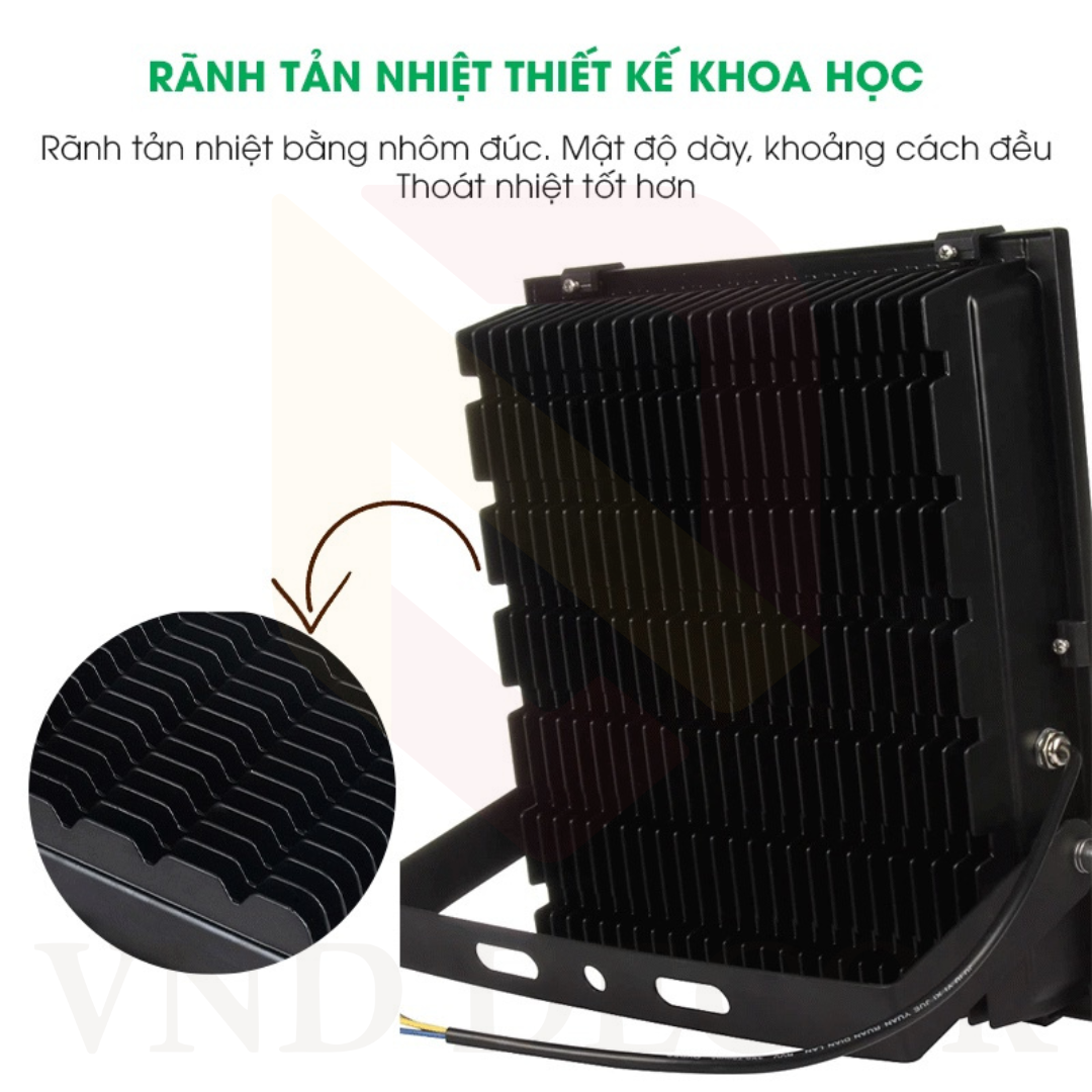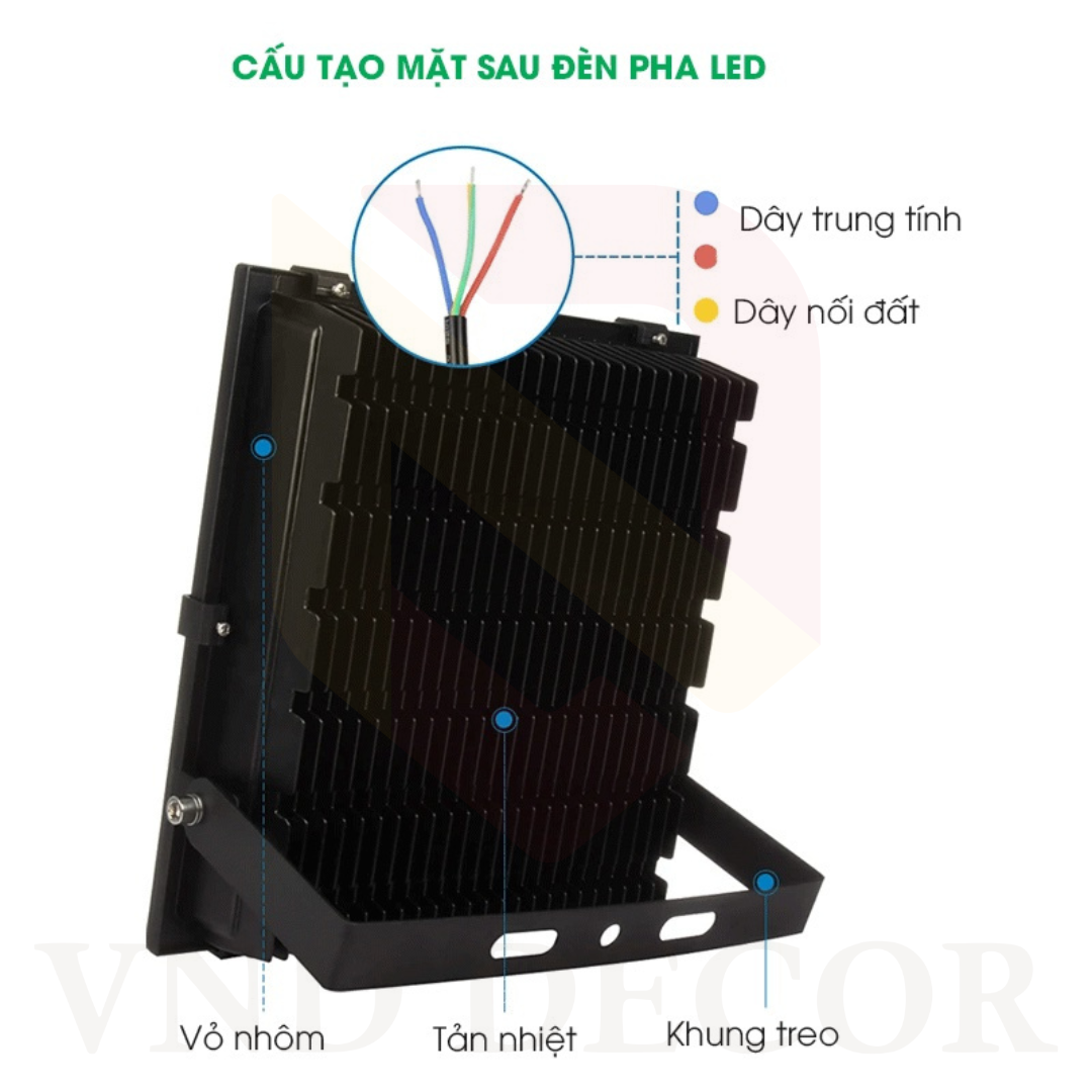 Mẫu đèn led pha mà VND DECOR đang giới thiệu với bạn là dòng công suất thấp chỉ 50w, 100w. Với những mức công suất này, có thể ứng dụng để chiếu sáng dân dụng như sân vườn, kho, sân bóng...